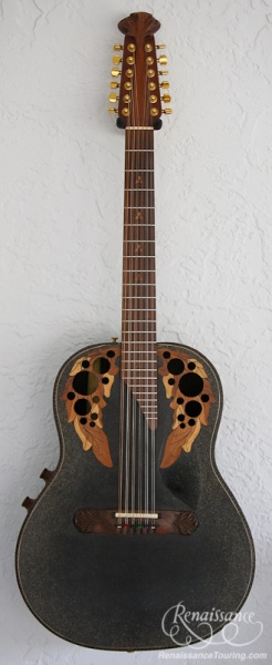 I purchased a black 12 string acoustic electric (which was the one I used) and a red one as well in 1976 or 1977. I also played an electric guitar as well which required quick changes of guitars so we had two fibre glass moulds made for both Ovations. I would be playing the electric guitar and walk up to the Ovation on the stand so it enabled me to play smoothly form one to the other. In fact sometimes with certain lighting it would appear as if they were floating in mid air.”